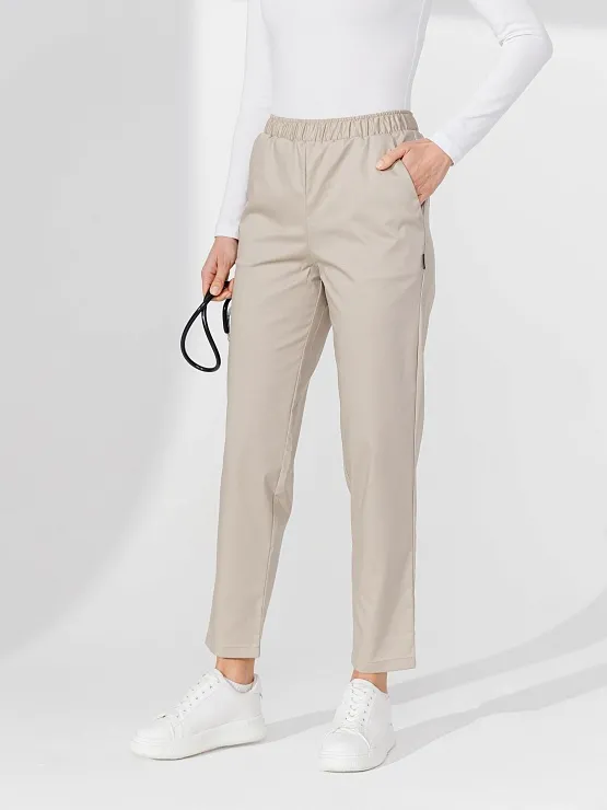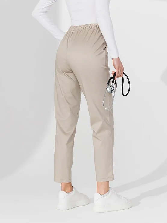 Медицинские укороченные брюки с высокой посадкой, которые сделают Ваш образ более стильным и современным. Для максимального комфорта пояс брюк на резинке. Имеется два прорезных кармана по бокам. Брюки превосходно впишутся в образ медицинских работников ( врача, медсестры), а также специалистов других профессий: массажиста, мастера маникюра и педикюра, бровиста.