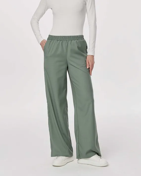 Медицинские брюки-палаццо из поливискозы. Брюки абсолютно не стесняют движения, благодаря свободному крою, а также легкой и тактильно приятной ткани. На поясе фиксируются удобной резинкой, что делает их комфортными при длительной носке. Такие брюки станут отличной базой для создания стильного медицинского костюма.