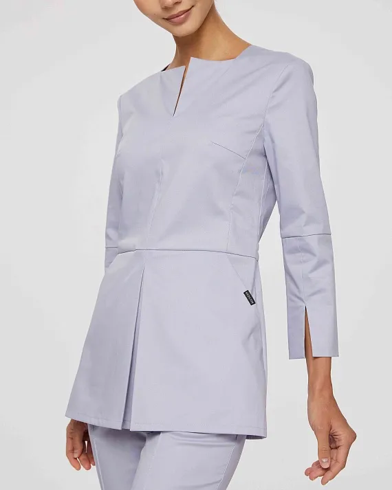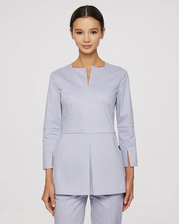 Медицинский топ прилегающего силуэта с горловиной "лодочкой" с разрезом по центру.