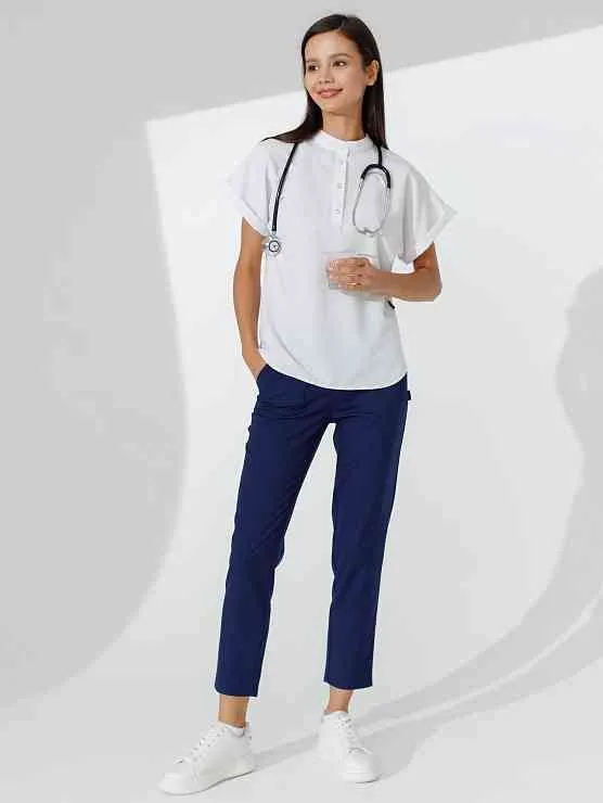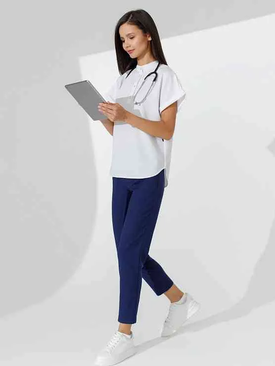 Медицинский костюм, который состоит из рубашки с цельнокроеным рукавом и укороченных брюк. Костюм выполнен из очень мягкой , лёгкой и тактильно приятной ткани. Брюки имеют два вместительных кармана. Пояс на резинке.