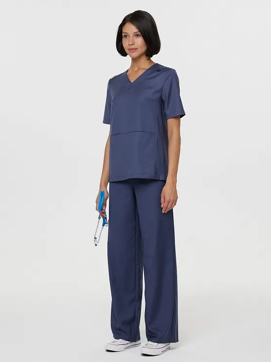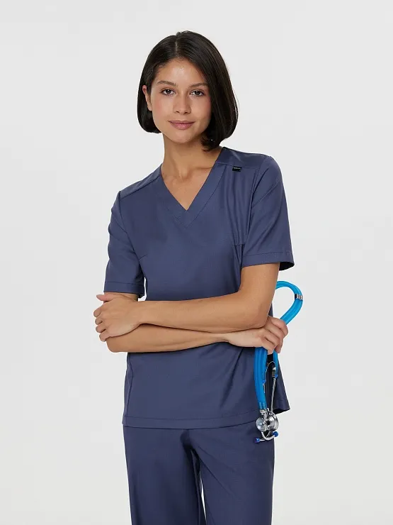 Медицинская рубашка с V-образным вырезом и отлетной спинкой. Благодаря свободному силуэту, рубашка очень комфортна в ежедневной носке и обеспечивает полную свободу движений. Предусмотрены два глубоких кармана для хранения инструментов и необходимых мелочей. Медицинская рубашка выполнена из поливискозы – невероятно мягкой, дышащей, тактильно приятной ткани.