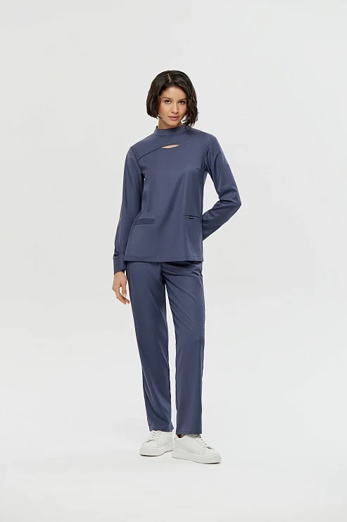 Удобный и стильный медицинский лонгслив из мягкой и дышащей поливискозы. Фигурный вырез деликатно подчеркивает женственность, сохраняя деловой стиль. Лонгслив легко комбинируется с любыми брюками из коллекции MEDILION.