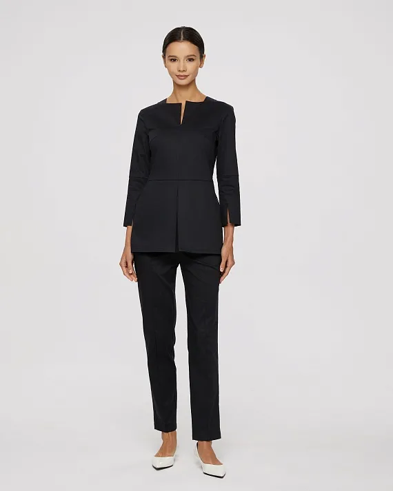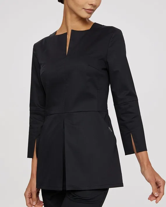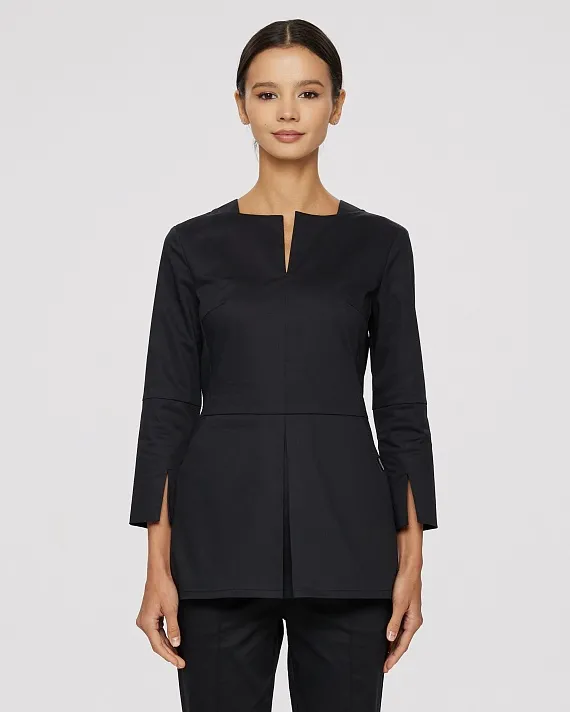 Медицинский топ прилегающего силуэта с горловиной "лодочкой" с разрезом по центру.